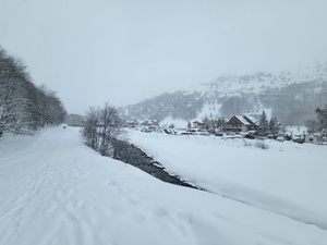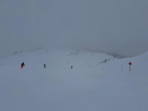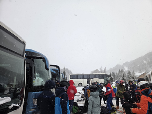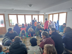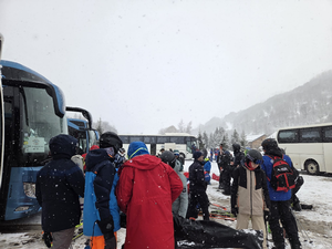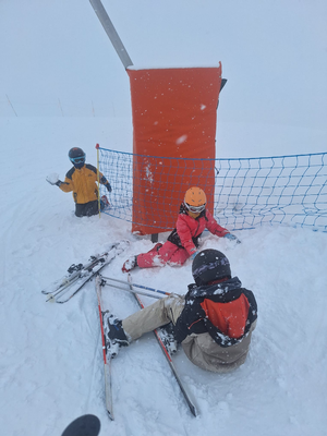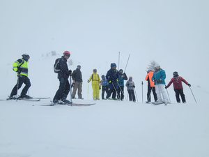 Dixième sortie du club direction Valloire - Vameinier, parking des Verneys, 2 bus de 65 et 63 places, 31 élèves en cours avec 9 moniteurs, à l'arrivée ça neige, 124 courageux(ses) pour affronter ce temps médiocre toute la journnée, en haut tout bouché on ne voyait rien, en bas s'était un peu mieux.